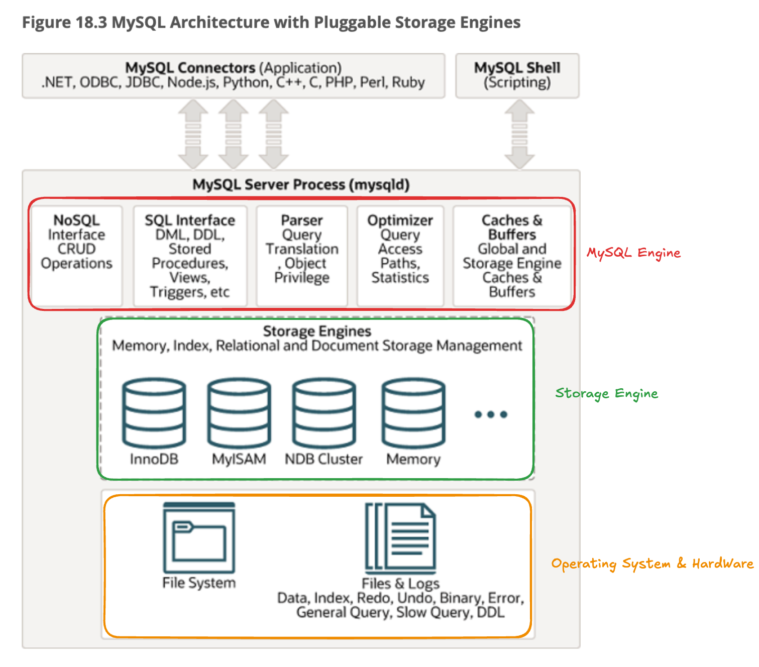 서비스를 개발하는 서버 개발자라면, 빼놓을 수 없는 고민은 데이터를 어떻게 저장하고 어떻게 읽을지에 대한 고민이다.대부분의 서비스는 데이터를 저장하기 위해 RDB에 저장하고, 많은 RDB 솔루션 중 MySQL을 가장 많이 이용한다. 실제로 나도 MySQL을 이용해 데이터를 저장하고, 서빙하고 있다. 그러다 문득, "내가 MySQL이라는 솔루션을 제대로 이해하고 사용하는건가?"라는 의문이 들었다. 그래서 MySQL 서적 중 가장 많이 읽히는 RealMySQL을 읽었다. 이번글에서는 RealMySQL을 읽으면서 서비스 개발자가(내가..) 알고있으면 좋은 지식들을 정리하겠다. MySQL 아키텍쳐MySQL Engine : MySQL의 두뇌에 해당하는 처리를 수행한다. 요청된 SQL 문장을 분석하고, 최적화해 ..